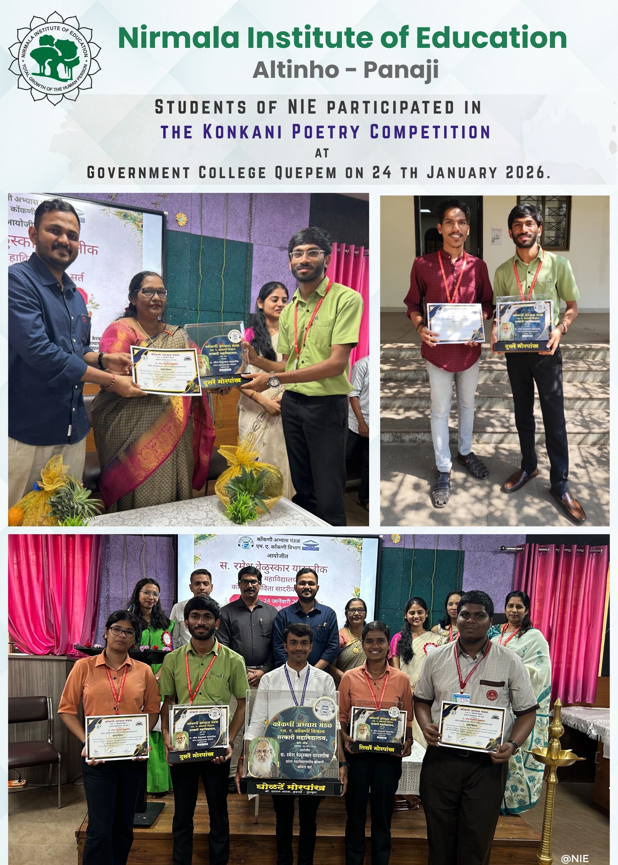The F.Y.B.Ed. Konkani Methodology students Mr.Muttanna Madar and Mr.Ratik Pagi of Nirmala Institute of Education participated in the Konkani Poetry Competition at Government College Quepem on 24 th January 2026.