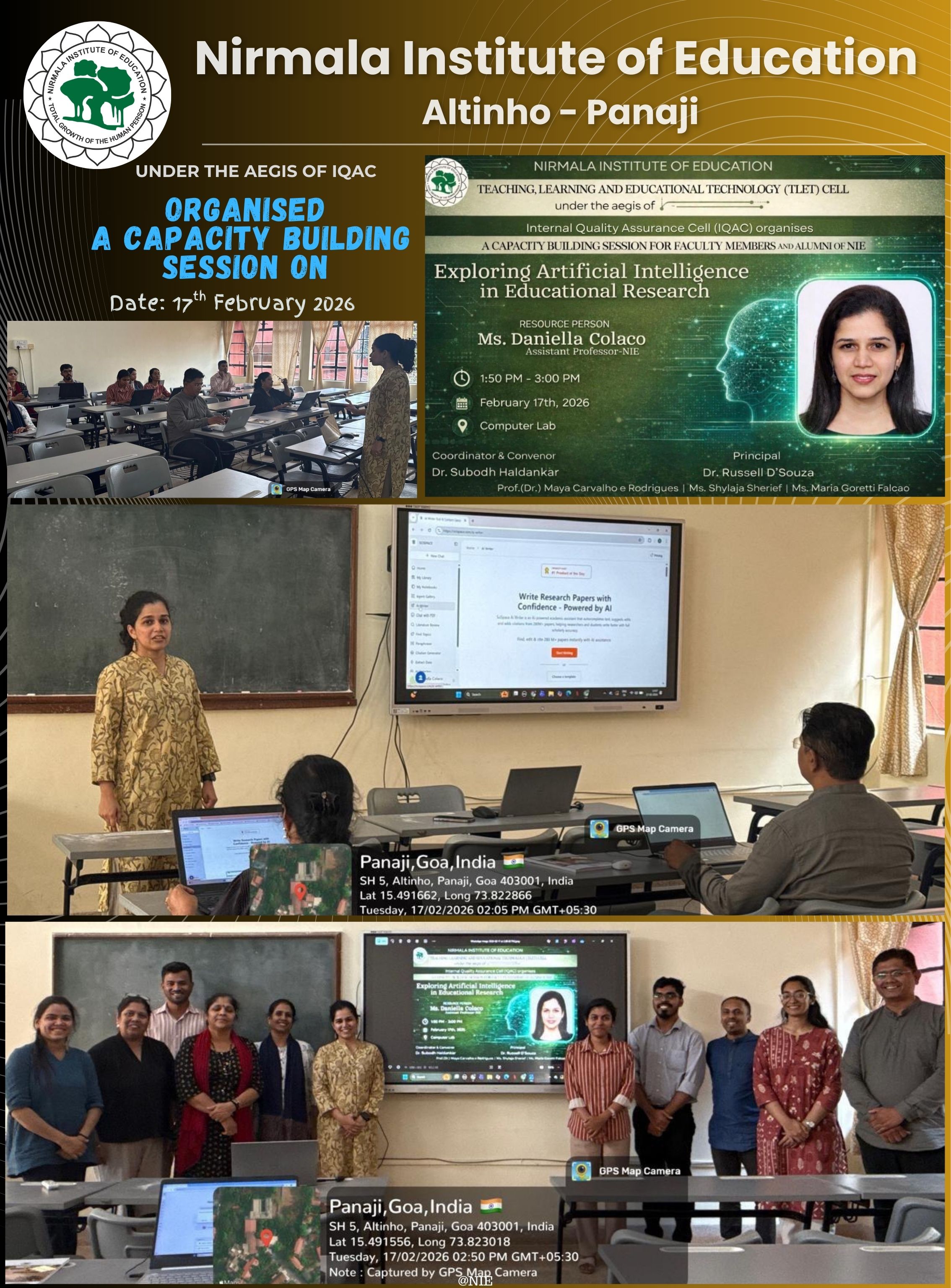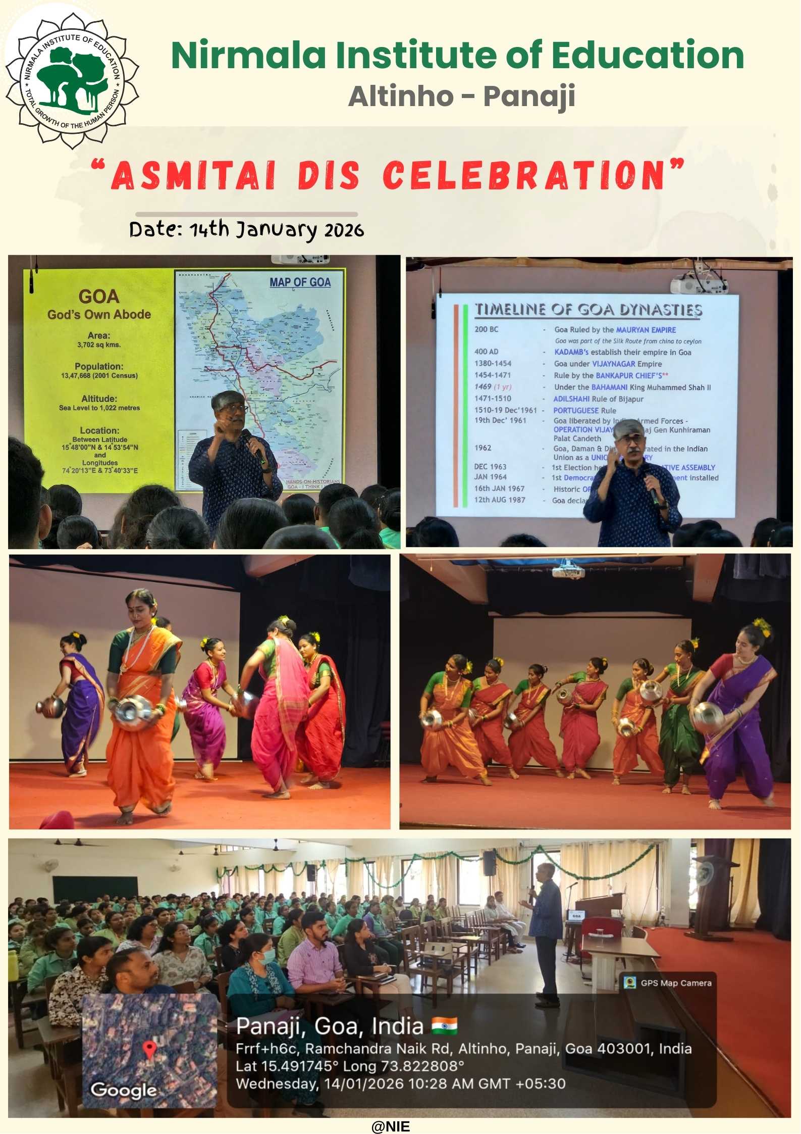 Goy Asmitai Dis, commemorating the historic 1967 Opinion Poll in Goa, was celebrated at Nirmala Institute of Education on 14 January 2026. As part of the celebration, Dr. Russell D’Souza, Principal of Nirmala Institute of Education, addressed the gathering, followed by an insightful session by the renowned speaker and historian, Mr. Sanjeev V. Sardesai.